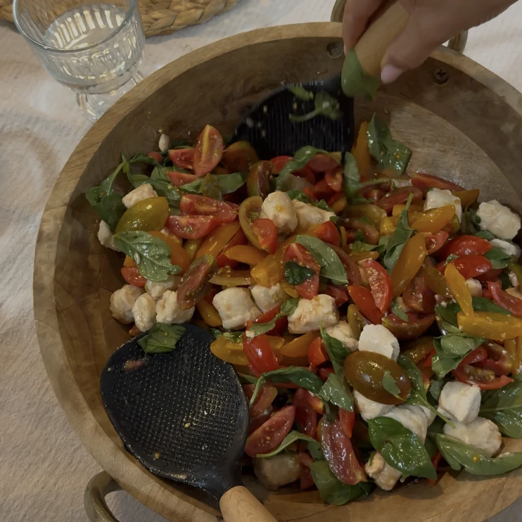 גרסה טבעונית וקולינרית לאחד הסלטים הכי קלאסיים בעולם – רק שכאן הכול משתנה: המוצרלה רכה ונמסה, עשויה מקשיו וטופו משי, העגבניות צבעוניות ומתוקות, והכול עטוף בשמן זית ובלסמי איכותי. תוצאה? מנה שמרגישה גורמה, נראית מדהים וטעמה פשוט… ממכר.
